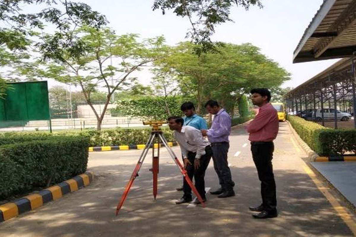 Levelling with Dumpy Level, Theodolite and Total Station - Mr. Shubham Bansal, Assistant Professor, C&EE took this session. Participants were taken in the field and were divided in the groups of four each to give hands on experience on surveying equipment and actual field problem. All the participants were instructed to work on all the three equipment and take the readings accordingly. After working on equipment, they were asked to draw profile diagram according to the readings taken by them. The session concluded with demonstration of one of the practical applications of Levelling to participants and they were instructed to work on the problem of Cut and Fill of Earthwork. Worksheets were provided to participants.